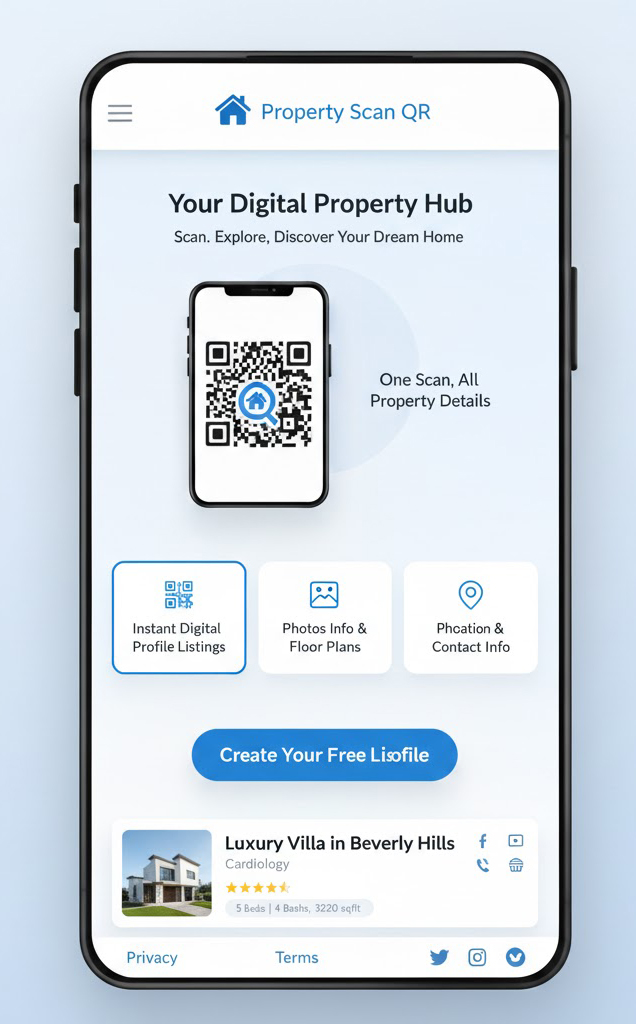 Digital property marketing for real estate. Showcase properties with digital listings that work anywhere. One QR code connects buyers to all your property details, photos, floor plans, location, and contact information.